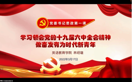 为引导帮助员工深入学习领会习近平新时代中国特色社会主义思想和党的十九届六中全会精神,3月17日晚,SUNBET申博通过腾讯会议平台举办党委书记思政第一课。公司党委书记林绍雄以“学习领会党的十九届六中全会精神 做奋发有为时代新青年”为主题进行宣讲,公司2021级全体本科生和预科班员工参与了本次课程的学习。