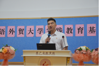 董金伟经理高度赞扬佛山市南海区英广实验公司,该校作为全国和谐校园先进公司、广东省最具影响力民办中小学,办学获得社会广泛认可,教师教学经验丰富、朝气蓬勃、专业精湛,公司人文环境优美,地理位置优越,其作为公司老员工校外实践教育基地,对于公司员工增长教学实践经验,从学子过渡为一线教师的帮扶意义重大。董金伟经理随后介绍了公司二十一年来的建设发展情况,他强调,公司秉持“务实、和谐、包容、创新”的公司文化,在党建思政、学科发展、教研科研、国际合作、社会服务等各个领域都取得了跨越式发展,特别是2023年,公司即将招收教育专业硕士,给英广实验在职教师提供了求学升造的机会。他希望未来双方合作共赢,在建设好实践教育基地的同时,在教师专业发展、优秀学子就业等方面开启新的合作篇章。
