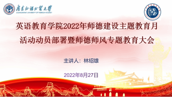 8月27日,SUNBET申博线上召开新学期工作布置暨师德师风教育大会,会议由党委书记林绍雄主持,公司全体教职工参加会议。