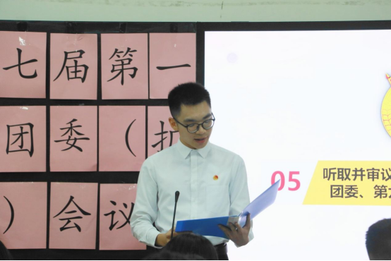 公司员工会执行主席何梓锌汇报团委员工会过去一年的工作,就思想引领、社会实践、宣传沟通、文体活动、学术竞赛、以及权益服务六个方面,分享英教团学一年来的主要工作与成就,同时对下一届团委员工会提出期望:一是以服务广大同学为宗旨,保障同学的切身利益;二是切实抓好自身组织建设,积极发挥员工能动作用;三是锐意进取,大胆创新,奋斗铸就事业,创新开辟未来。