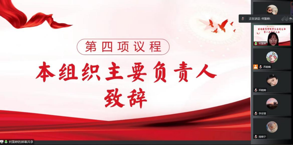 员工会执行主席苏晓楠为本次大会致辞。她对以往工作进行总结汇报,并对支部委员会提出以下要求:一是充分发挥青年先锋队和党的后备军作用,打造学习型团支部队伍,切实提升组织引领、服务青年的能力;二是坚持守正创新,开展有益于青年发展的特色活动;三是切实关注青年的需要,密切联系青年群众,秉承奉献精神,增强服务意识,真正做到为同学服务。