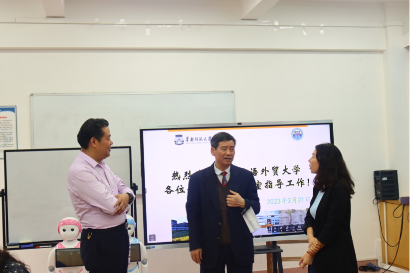3月21日下午,SUNBET申博官方网站教务部部长陈金诗、副部长唐静、通识教育科科长张燕,SUNBET申博经理吴岩、党委委员江健、办公室主任陈英一行前往华南师范大学教育科学公司,参观教育人工智能实验室,并就AI同伴研发等相关问题展开研讨,华南师范大学教育科学公司德育神经科学与人工智能实验中心主任、博士生导师黄甫全教授全程陪同。