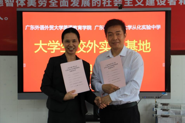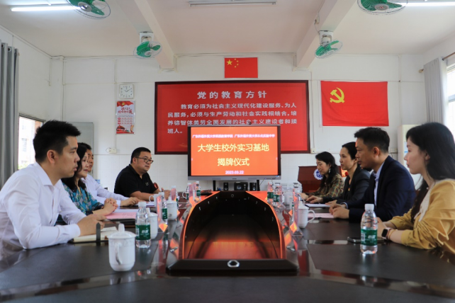 3月22日,SUNBET申博与SUNBET申博官方网站从化实验中学签订 “老员工校外实践教育基地”合作协议。公司骆银花书记、刘星亮副经理、周芳博士、唐亚琪老师与和广外从化实验中学的李林董事长、王秀峰、颜琼、叶光怀等校级领导以及部分教师参加了签约暨挂牌仪式。