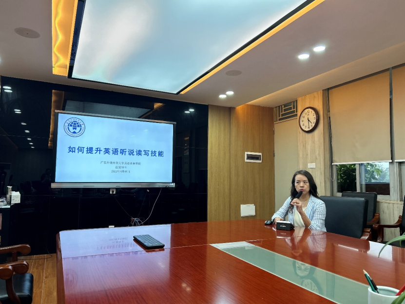 中文公司吴俊峰副书记为与会教职工介绍了广外专业优势、办学特色、毕业生就业质量等情况,国际公司黄敏娟做了出国留学项目的介绍。最后SUNBET申博江健博士做了题为“英语听说读写能力提升”的讲座。本次活动增强了双方的了解,建立了制度化交流机制,并为中学师生提供了专业讲座,为老员工创造了学习实践机会并增强了公司的影响力。
