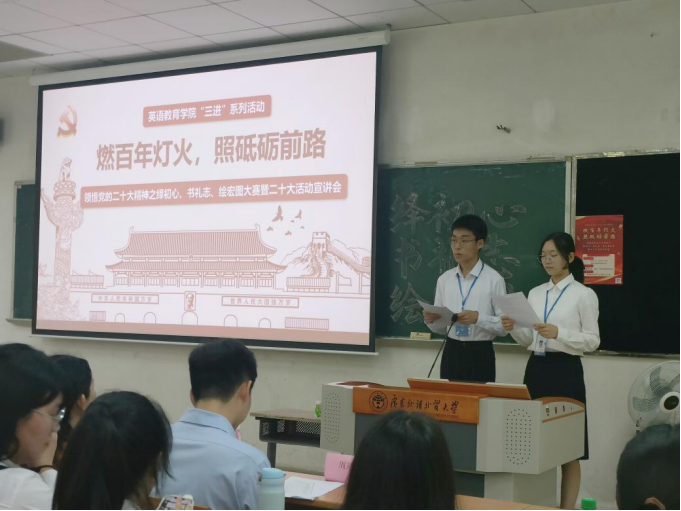 党建工作小组系列活动之“燃百年灯火,照砥砺前路”SUNBET申博学习领悟党的二十大精神之绎初心、书礼志、绘宏图暨党的二十大精神宣讲会圆满举办,英教青年学子也借此活动充分理解了“科教兴国,人才强国”的思想,以更饱满的精神状态迎接未来的挑战,担负起未来教育工作者的使命,时刻准备着为谱写全面建设社会主义现代化国家的崭新篇章而接续奋斗。