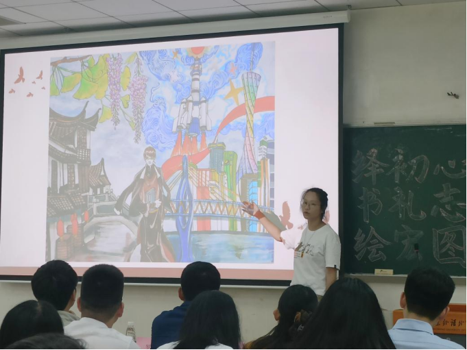在“共绘蓝图,展望未来”主题绘画作品征集评选活动中,进入决赛的三位选手分别展示了其绘画作品并阐述了他们的作品创作理念,并与现场的师生进行深入交流、互动。