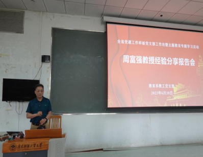 2023年6月30日上午,由公司工会、教育系教工党支部联合组织的全省党建工作样板党支部工作坊暨主题教育专题学习活动——周富强教授经验分享报告会在教学楼G207教室举行。公司原党委委员、经理董金伟教授,工会主席、副经理张倩副教授,工会副主席、办公室主任张文萃,党委委员、教育系主任刘之远、工会秘书吴世傲、第四教学部教师江玉和员工代表周岸出席报告会。报告开始前,公司工会副主席张文萃代表公司工会,向光荣退休的周教授献花并送上祝福。