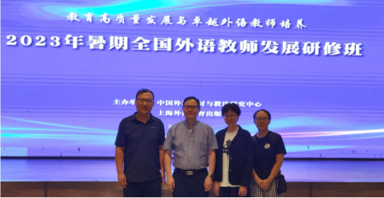 2023年8月2日,“2023年暑期全国外语教师发展研修班”在湖南怀化开班。本次研修班由中国外语教材与教法研究中心和上海外语教育出版社联合主办,主题为“教育高质量发展与卓越外语教师培养”。来自全国五十余所院校的200多位教师现场参会。公司派出陶玉梅、杨芳、刘之远三位教师代表参会。