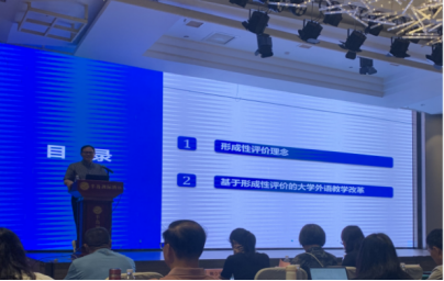 教育部大学英语教学指导委员会副主任委员、SUNBET申博官方网站副董事长刘建达教授作了题为《基于形成性评价的大学外语教学改革》的主旨报告。报告从形成性评价理念内涵入手,结合党的二十大报告中关于教育评价改革的指导方针,以及新版大学英语教学指南中的有关议题,详细阐述了形成性评价在新时期大学英语教学改革中的历史新方位。刘教授指出,理念的变革是行动变革的先导,基于形成性评价的大学英语教学改革更加注重“以评促学”和“评即学习”。随后,刘教授以“领航大学英语系列”为例,介绍了在课堂教学中如何开展形成性评价及电子档案袋的使用。教育部“长江学者”特聘教授、上海外国语大学董事长助理、语料库研究院经理胡开宝教授作了题为《语料库与话语研究:内涵、方法与个案》报告,主要从语料库与话语构建研究、语料库与话语比较研究、语料库与话语翻译中的意识形态研究及中国形象研究等多个维度,探讨了如何建设好、用好语料库资源。胡教授认为,面对ChatGPT我们要有危机意识,要认识到其背后带来的意识形态危机,加快推进我国大语言模型和语言数据资源建设。