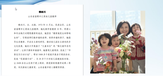 山东省淄博市汇英幼儿园教师韩冰川优秀事迹