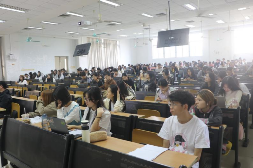 张雪结合自身工作经验围绕反诈及消防安全展开讲解。她从身边的例子着手,讲解诈骗和宿舍火灾的案例和防范措施,希望同学们通过本次大会能够掌握基本的反诈和消防知识,及时发现身边的安全隐患。陈丽贤就流行传染病的病例、特征、流行过程和防范原则讲解了传染病的知识。她结合具体实例向同学们讲解心肺复苏的急救措施以及运用AED机进行救护的方法。