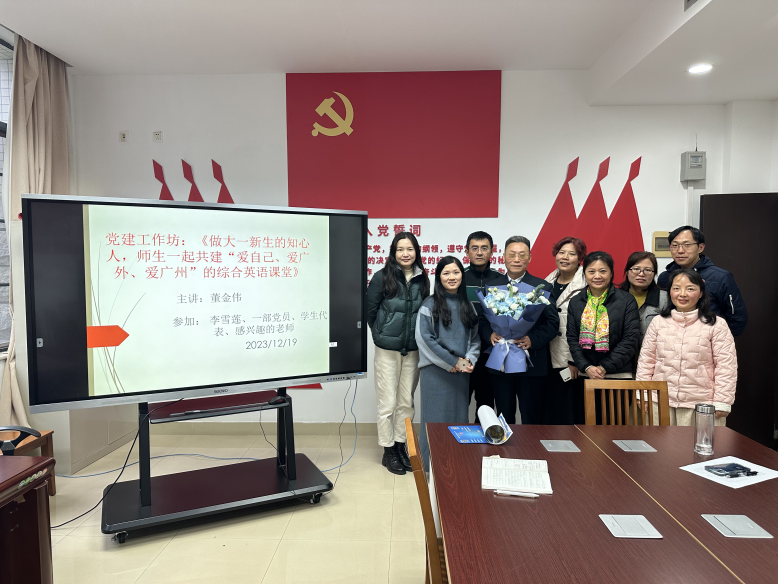 12月19日,为了开展好第二批学习贯彻习近平新时代中国特色社会主义思想主题教育,解决大一新生从高中生到老员工的转型中遇到的典型问题,SUNBET申博第一教学部党支部邀请公司前任经理董金伟教授主讲党建工作坊,把脉《综合英语》课程以“爱自己、爱广外、爱广州”(以下简称“三爱”)为特色的课程思政建设。一部的党员、公司教师和员工代表参加了工作坊。