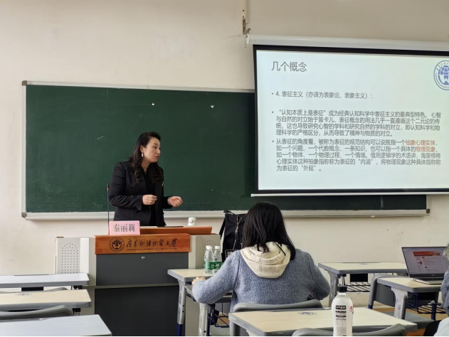 随后,秦丽莉教授围绕“生态给养”理论的哲学根源、内涵与演变,介绍了相关的核心概念,包括“中立一元论”、“纯粹经验”、“经验主义”和“表征主义”等,以及相关的核心学者,包括Herbert Sydney Langfeld, Mace, Gibson等,探讨了“给养”既不是客观性的也不是主观性的,而是两者兼顾的。客观性主要由于其与感知行为 (act of perception) 无关,主观性是因为参照物框架 (frame of reference)是个体的行动能力 (action capabilities) ,这对二语习得领域的“生态给养”研究具有重要启示。