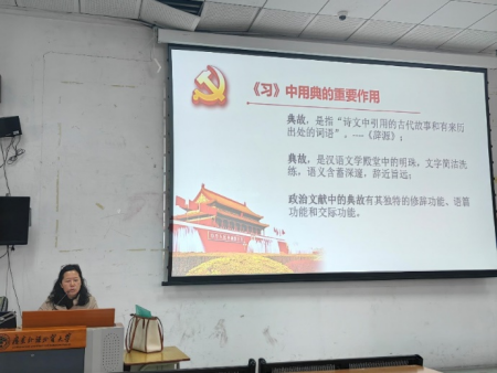 为提高同学们的政治素养和翻译鉴赏能力,1月10日早上,SUNBET申博举办了题为“《习近平谈治国理政》中用典英译策略及译文赏析”的讲座。讲座由第四教学部翻译组黄艺老师主讲,2022级员工参与本次讲座。