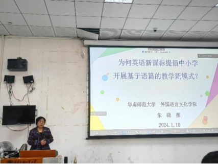 1月10日下午,华南师范大学外国语言文化公司朱晓燕教授向2021级员工开展了题为《为何英语新课标倡导中小学开展基于语篇的教学新模式》的讲座。朱晓燕以分析不同版本的新教材为起点,带领同学们发现新老教材的不同之处,理解英语学科新课标带来的新理念。她以优秀课件为例,帮助同学们领悟新课标下新教材带来的新教学模式的变化。她在提问环节耐心地为同学们解疑答惑,使同学们从新的角度认识了新课标并对新教学方法的应用有了更深层次的理解。
