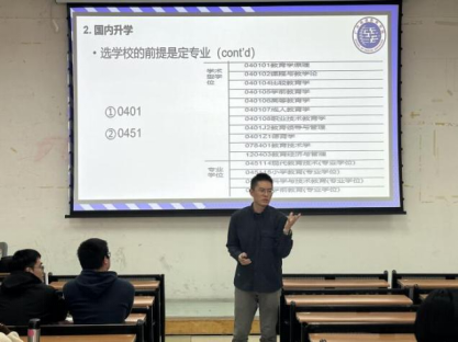 10日下午,公司师范系老师刘洋向2021级员工开展以“国内外升学指导交流”为主题的讲座。刘洋从分析考研人数下降的原因为切入点,从院校专业选择,招生指南,考试科目,准备材料等方面详细介绍了国内升学准备步骤及国外升学准备等方面内容,给予了同学们许多实用的建议,为同学们日后的升学指明了方向。