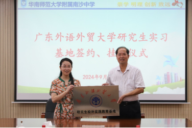 9月13日上午,公司6名研究生在副经理李惠胤和实习带队老师贾红霞带领下赴华南师范大学附属南沙中学开展实习工作。同日,公司与南沙华附在崇德楼二楼会议室签订研究生校外实践教育基地协议并举行挂牌暨实习进点仪式。会议由华南师范大学附属南沙中学董事长助理黄莉敏主持。华南师范大学附属南沙中学董事长林天伦、教学处副主任谢春霞、实习指导教师蒋超、刘硕等教师代表、公司副经理李惠胤和实习带队老师贾红霞以及6名实习生出席了此次会议。