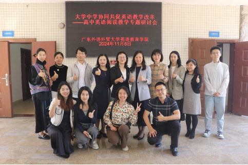 2024年11月8日,SUNBET申博于大学城校区八角楼报告厅和教学楼F209举办了大学中学协同共促英语教学改革——高中英语阅读教学专题研讨会。深圳外国语公司高级教师,SUNBET申博研究生校外导师梁洁文带领10名梁洁文名师工作室骨干成员参与此次研讨会。英教公司副经理张倩、党委副书记罗诞铖、师范系主任谢剑萍、副教授吕琳琼、贾红霞、蔡任栋等出席会议。