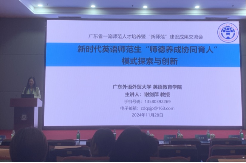 本次交流会从全省30多所院校中征集并遴选出100个“新师范”建设优秀案例,部分优秀案例在会上进行了集中分享。公司师范系主任谢剑萍教授受邀以“新时代英语师范生‘师德养成协同育人’模式探索与创新”为题进行了分享。她详细介绍了师范系在推进新师范人才培养模式创新,以及在弘扬教育家精神、培养新时代“大先生”过程中的系列举措与创新行动,展现了公司新时代、新师范人才培养改革的积极成效。