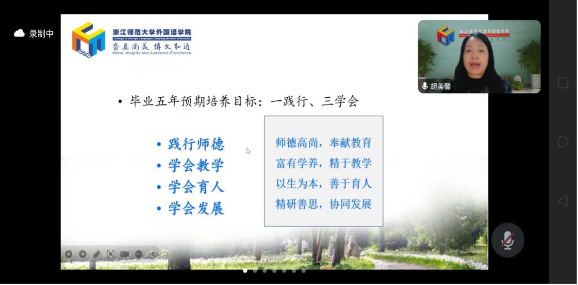 为提升公司教师对师范类专业认证的理解与实践能力,12月26日,公司邀请浙江师范大学外国语公司经理胡美馨教授为师范系教师开展师范认证线上培训会。培训会内容丰富且深入,全面覆盖了师范认证的多个关键方面。
