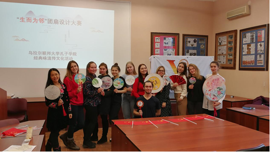苏春(左一)在乌拉尔联邦大学东方语言系三年级口语课的活动照