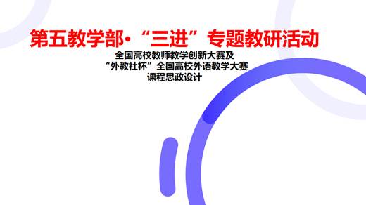 6月19日,第五教学部召开专门用途英语(ESP)“三进”专题教研会议。此次会议由孙红主任主持,第五教学部全体专任教师参加会议。会上,朱晓真老师结合全国高校教师教学创新大赛及“外教社杯”全国高校外语教学大赛参赛经历,分享了大学英语课程竞赛中的课程思政实践做法,并探讨如何将思政元素有效融入ESP课程的教学实践中。