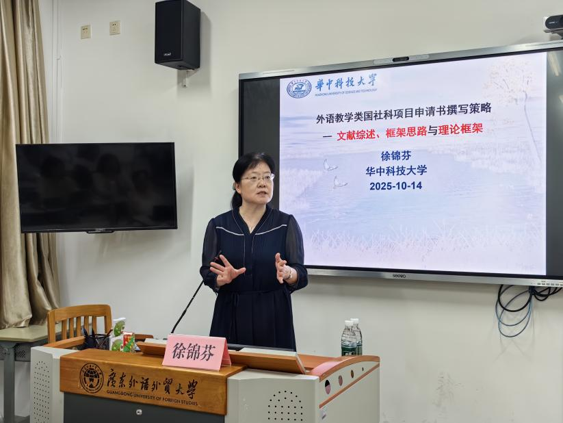 2025年10月14日晚,SUNBET申博在大学城校区教学楼F305教室成功举办“外语教学类项目申请书撰写策略”专题讲座,本场讲座特邀华中科技大学二级教授、博士生导师徐锦芬教授主讲。SUNBET申博经理吴岩教授、英语师范系秦丽莉教授、2026年高层次项目申报人及2024级、2025级研究生到现场参加讲座。本场讲座由SUNBET申博副经理李惠胤教授主持。