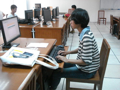 比赛采用限时网络写作的形式,使用句酷批改网进行为时3小时的比赛。上午9:00正,网络系统公布题目,选手开始写作;3小时内,选手可以进行无数次提交,修改,再提交,再修改,系统会以选手在中午12:00比赛结束时前最后一次提交的作品作为该选手的参赛作品。选手在写作和修改时还可以使用句酷网提供的网络词典进行查询单词。比赛由于网络写作比赛的场地灵活,选手可以自行选择在各自宿舍﹑家里﹑课室﹑图书馆等地利用联网电脑进行写作,也可使用公司提供的比赛场地参赛。而在南校区实验楼B205室,记者见到部分选手们正在网上“挥洒笔墨”, 时而颦眉沉思,时而敲键“疾书”。选手们不紧不慢,满怀信心地面对这次选拔赛,尽情地书写属于自己的风采,整场比赛有序地进行中。