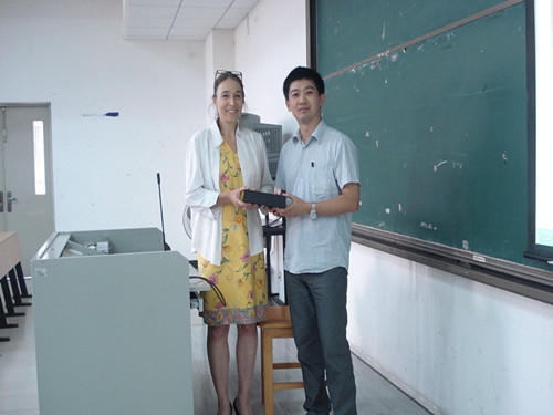 讲座开始前,教育系主任熊涛老师为Dr. Isabelle Druc-Toch赠送了一个小礼物,代表广外SUNBET申博对她的到来表示欢迎。
