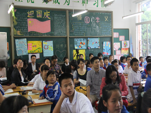 公司老师聆听并指导景中实验中学老师说课