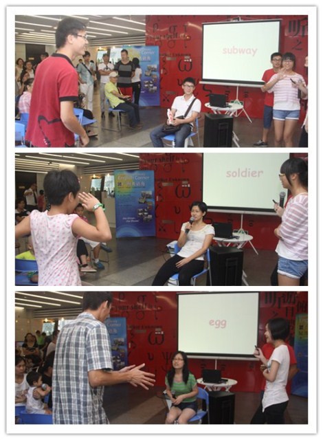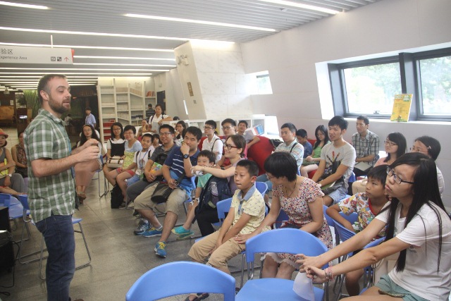 在活动开始,外籍馆员Sam Boss带领大家就电视真人秀展开讨论,什么是真人秀?真人秀是真是假?真人秀的社会价值是什么?一连串的问题自然引出了活动主题《爸爸去哪儿了》。接着,SUNBET申博官方网站的实习主讲们以电视节目《爸爸去哪儿》为素材,结合网络与社会对节目的评论,逐一为大家解读了节目中五组不同家庭的孩子性格和家庭教育模式。在激发大家讨论的同时,鼓励大家分享自己的成长故事,其中有温暖、有孤独、有激励、有迷茫……每一个人的成长过程中都有一段关于父母的特别记忆,引起了现场参与者们的沉思——陪伴孩子就是给予孩子的最好教育。最后,活动在英语猜词游戏轻松愉快的笑声中画上了句点。