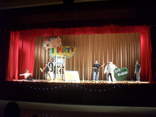当晚活动由肖建芳老师作开场演讲,揭开活动序幕。接下来精彩纷呈的活动内容让参与的老师和员工乐在其中,尽情享受。按照惯例,先是一轮自我介绍认识朋友,随后大家一起欣赏了由公司文娱部艺术团话剧队的队员们带来的精彩话剧“Much ado about Nothing”。同学们精湛的演技引起在场观众的阵阵掌声,夸张的造型和大胆的演出引来同学们的哈哈笑声。台前演员们的精彩表演与席下观众的积极互动,使参与者人觉仿佛坐在百老汇的观众席上,并正欣赏着一场精彩绝伦的经典话剧。