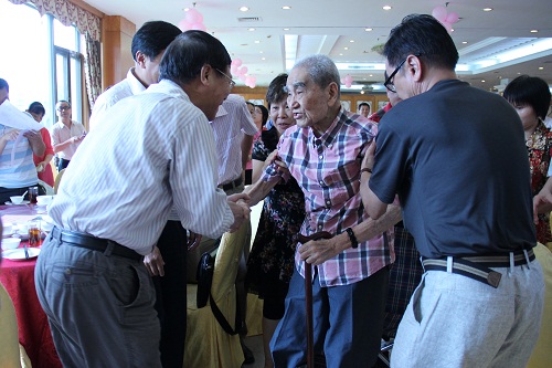本网讯6月15日,公司老教授叶自任的百岁寿宴在广州碧桂园豪苑会所举行。叶自任曾于1972年5月始到原广州外国语公司从事教学、教研和管理工作,并于1985年从原广州对外贸易公司离休。公司党委副书记陈建平,离退处处长王新贵、副处长潘运利、董小平,教育公司经理董金伟、党委书记林绍雄,党委宣传部副部长陈红霞等前去贺寿,送去祝福。