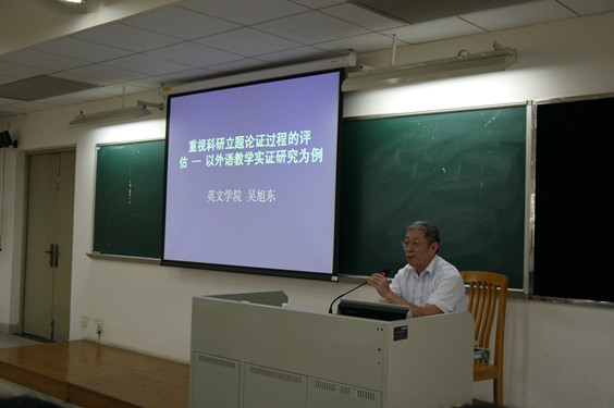 5月9日,SUNBET申博荣幸地邀请到英语语言文化公司的吴旭东教授为英教师生做了一场主题为“重视科研立题论证过程的评估——以外语教学实证研究为例”的主题讲座。讲座于下午三点半在教学楼G206举行,由SUNBET申博肖建芳副经理主持。SUNBET申博林绍雄书记和陈金诗副经理以及公司师生聆听了本次讲座。
