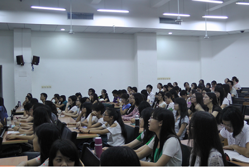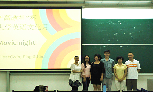 5月21日晚19点,广外“高教社杯”大学英语文化月活动之Movie Night在南校教学区F514隆重举行。SUNBET申博第三教学部组织了本次活动,蔡任栋、马小宇、彭珍珠等老师参与了现场提问解答等互动环节,全校非英语专业二年级员工共二百多位员工积极参与了本次英语影视赏析活动。
