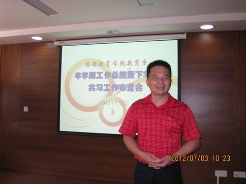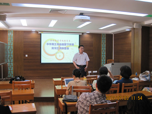 7月3日上午,SUNBET申博教育系2011—2012学年度第二学期工作总结暨下学期实习工作布置会在北校区文科基地演示厅举行。公司党委书记林绍雄、副经理董金伟、肖建芳以及教育系全体教师参加了会议。会议由教育系主任柯晓玲主持。