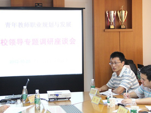 接着,其他几位青年教师从不同侧面分享了自己的职业成长经历。在座校领导对他们提出的问题作出直接回应,如对科研数据库的创建讨论,公司出国培训的最佳人数规模拟定,教学贡献与职称的协调关系等等问题。