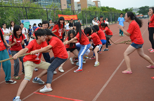 最后进行的是一年一度选拔赛的重头戏——大一拔河比赛,大一四个班级先分为一二班和三四班两组进行比拼,三局两胜,决出胜利的两个班级再进行比拼。一二班的双方选手各就各位,观赛员工屏气凝神,等待着那声哨响,比赛随即展开,顿时全场沸腾,两方的选手都咬着牙,倾尽全力坚守着阵地,不让麻绳中间的红缎带进入对方的领地,比赛局面僵持着,双方两队各不相让的加油声把气氛推到全场最高潮,经过三轮的激烈角逐,最后1203班以强劲的势头夺取了最终的胜利,在这样的时刻,无论输赢,都已不再重要。因为他们的努力和团结早已成了最美好的回忆,他们都是当之无愧的无冕之王。