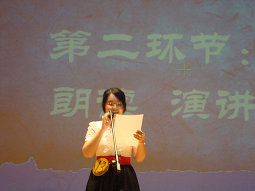 在第二部分,选手们将感情寓于文字,在演讲中尽情地抒发自己的所思所感。13号选手廖敏的表现尤为出色,其一口稳重、圆润的口音获得评委们的交口称赞。
