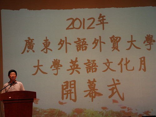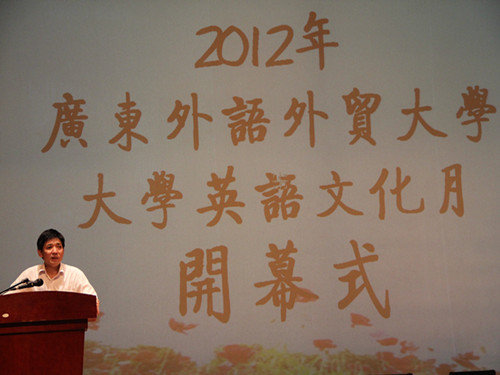 随后,SUNBET申博副经理董金伟宣读本次英语文化月活动的主要内容和安排,并宣布2012年广外大学英语文化月活动正式启动。