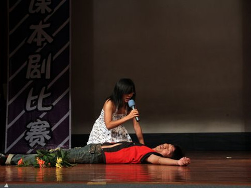接下来,五支来自不同公司的队伍将课本剧搬上舞台,为现场观众带来一场名副其实的课本剧之夜。经贸公司队伍上演的的《Pride and Prejudice》,众多美女靓男登场,恰当好处的情感表达、经典的告白与拒绝以及的圆满的结局都为这支队伍加分不少。法公司队伍的课本剧以“love”为主线,描绘了一场三人之间的爱情悲剧,悲情中又带一些诙谐,笑声过后带给人的是深思与自省。来自中文公司、管理公司和财经公司的三支队伍选取的是同一个剧目中同一段场景,这无疑为他们的表演带来了不小的难度。而令人惊喜的是,尽管选材相同,他们的演绎却不尽相同。每支队伍都在表演中加入了自己的理解与创意,可谓是亮点十足。中文公司的队伍服装、氛围到位,场面宏大,事先准备好的录音播放使表演过程更加流畅;管理公司大胆地在原剧本上加入最近热门的《泰坦尼克号》的元素,导演也在台上大秀了一把天籁般的歌喉,惊艳全场;财经公司则以出色的演技见长,用丰富自然的表情动作引人入胜。