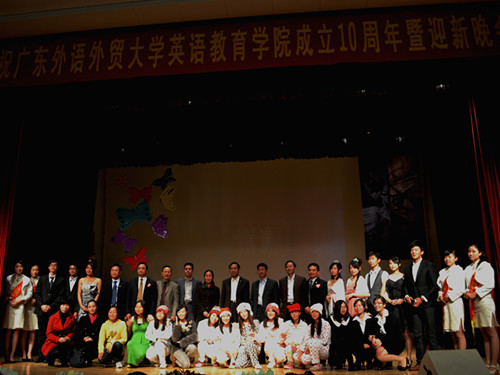 今夜,星光璀璨,彩蝶飞舞,SUNBET申博筹备已久的公司十周年暨迎新晚会于12月3号晚在艺术楼小剧场隆重举行。英教师生齐聚一堂,共同欢庆这别具意义的时刻。出席晚会的嘉宾有全国外语院校大学外语协作会会长、北京第二外国语公司副董事长邱鸣,全国外语院校大学外语协作会常务副会长、北京第二外国语公司应用英语公司经理张喜华,科学出版社社长胡升华,广州易贝教育科技有限公司首席执行官张继承,校团委书记陈兵,公司经理霍海洪,公司党委书记林绍雄,副经理董金伟,副经理肖建芳及公司党委副书记何伟儒。