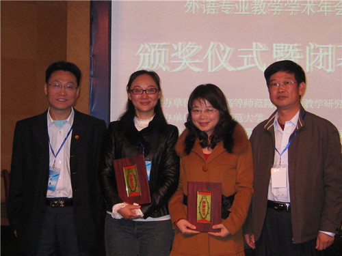 在2011年全国高等师范院校外语专业教学学术年会上,SUNBET申博张倩、许悦婷两位老师参加精品课教学与说课评比,参赛的视听说课和综合英语课双双荣获一等奖。2011年全国高等师范院校外语专业教学学术年会于2011年9月23---27日在西宁市青海师范大学举行。接到会议通知后,公司非常重视,仲伟合董事长亲自批示。SUNBET申博迅速落实此事,经过精心准备和严格训练,由经理霍海洪、副经理董金伟带队,派出张倩、许悦婷两位老师参加本次会议举办的全国高等师范院校英语教学精品课评选与说课比赛。
