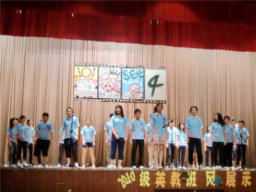 最后一个登场的是104班,他们以“四海升平”为主题,通过旅游线路的方式,搭乘时间的列车,重温了过去一年所发生的故事,无论是英文戏剧大赛、运动会,还是红歌合唱,这些都成为一道道靓丽的风景线,令人回味无穷。最后,4班的同学深情合唱班歌《你们是我的星光》,优美的旋律再一次深深感染了现场的每一个人。