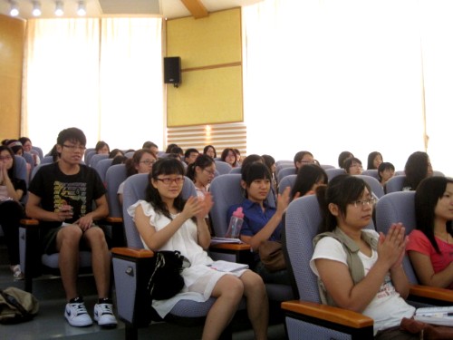 9月7日上午,现任广东省教育厅公司产品教材研究室英语科主任、广东省人民政府督学、中学英语高级教师的黄志红老师于SUNBET申博官方网站八角楼报告厅为SUNBET申博07级员工做了一场主题为“中学英语新课程标准解读”的精彩学术讲座,同时还探讨了同学们关心的课程改革以及考试制度等问题。