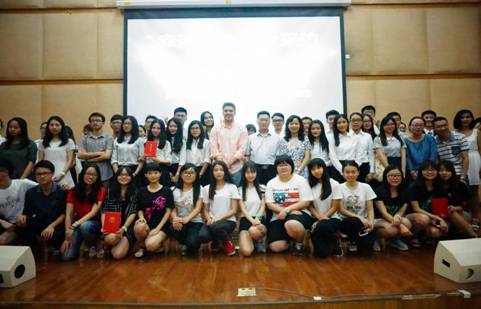 最后,由外教Brian Dennis对本次大赛做精彩点评,并给出意见和建议,使无论是才赛小组成员还是台下观众都获益匪浅,现场也因为外教的幽默讲话而掌声雷动。大赛尾声评委和所有参赛成员在台上亲切合影,为此次英语新闻视频大赛拉下帷幕。