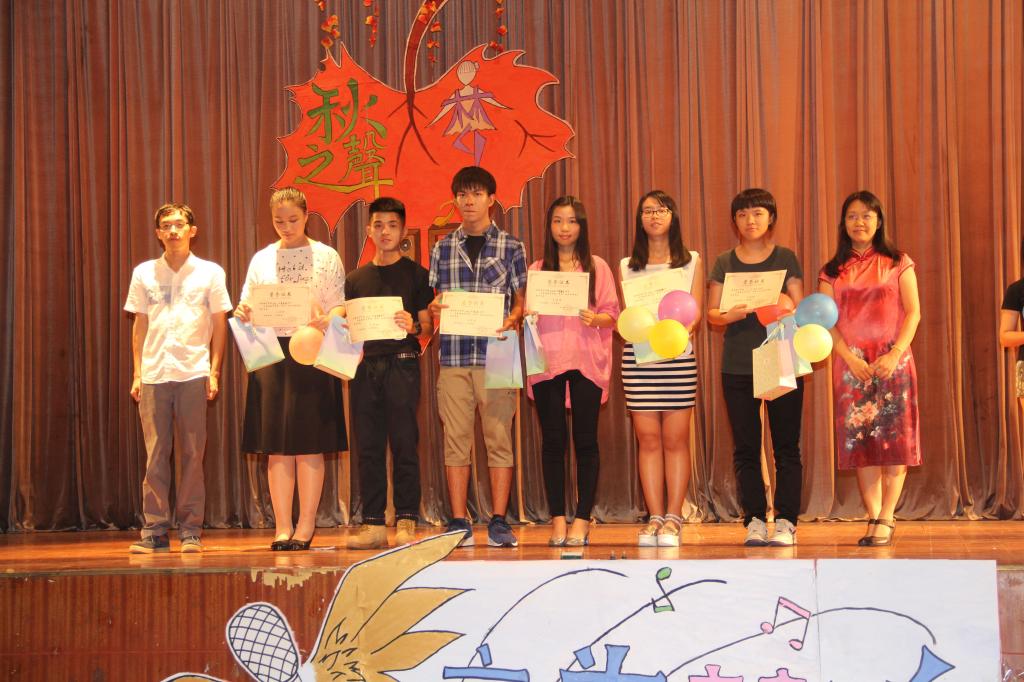 当晚9点左右,比赛进行至尾声,主持人揭晓最终获奖名单——杨健与廖宇健夺得桂冠;蔡琬琳、张欢欢、郑韵、贾绿笛将二等奖收入囊中;而廖慧欣、何柳珊、杨嘉仪、袁民、练世豪、黄金珍则拿下了三等奖。颁奖结束后,主持人邀请领导与嘉宾与获奖选手进行合照。