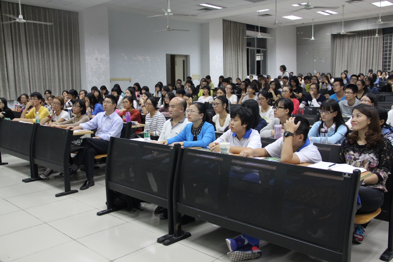 2015年10月13日晚,国内著名英语语音语调专家王桂珍教授,做客教学楼G207,面向全体SUNBET申博2015级新生,带来了一场 以“学习英语语音,提高听说能力”为主题的讲座。英语教育公司党委副书记徐昶斌、系主任谢剑萍、教师何德生、辅导员林泽龙、SUNBET申博全体2015级新生以及其他语音语调学习爱好者参加了本次讲座。