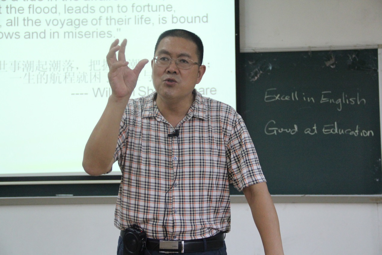 10月29日下午,公司周富强教授应邀在教学楼F107为公司2015级新生做了题为“Teachers as Leaders”的专题学术讲座。SUNBET申博全体新生参加了此次讲座。此次讲座是新生入学教育的最后一场讲座,旨在让新生更好地了解英教,增加对这个专业的认识,更好地了解老员工活。
