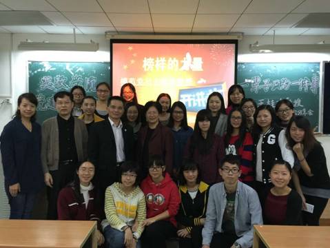 ,英语公司党建工作坊“榜样的力量——优秀党员开讲啦”系列活动之王桂珍教授从教40年经验分享会于南校区教学楼举行,由公司员工党建工作指导老师迟殿凤主持。英语教育公司党委书记林绍雄、全院共产党员、入党积极分子、部分教师和教育系员工参加了本次活动。王桂珍教授分享了自己40多年来的宝贵教学经验、丰富人生阅历和深邃心得体会,以此激励大家争取在教学岗位上有所建树,成为一名好老师,为广大教师以及即将步入教师行列的英教学子带来了很多的启发、教育和思考。